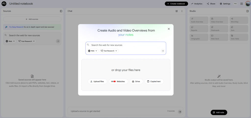 NotebookLM is not a general-purpose chatbot. It doesn’t browse the open web on demand. It doesn’t try to sound clever. It reads what you give it, grounds its responses in those materials, and helps you interrogate them.